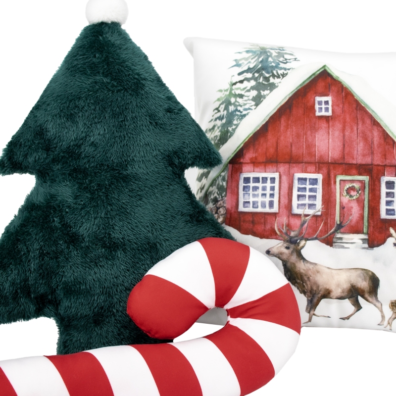 - Stylowy design: Kształt choinki z uroczymi pomponami nadaje poduszce świątecznego charakteru.