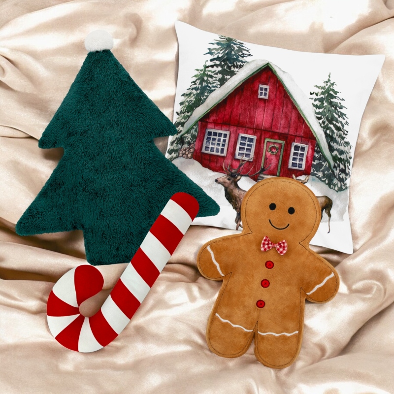 - Stylowy design: Kształt choinki z uroczymi pomponami nadaje poduszce świątecznego charakteru.