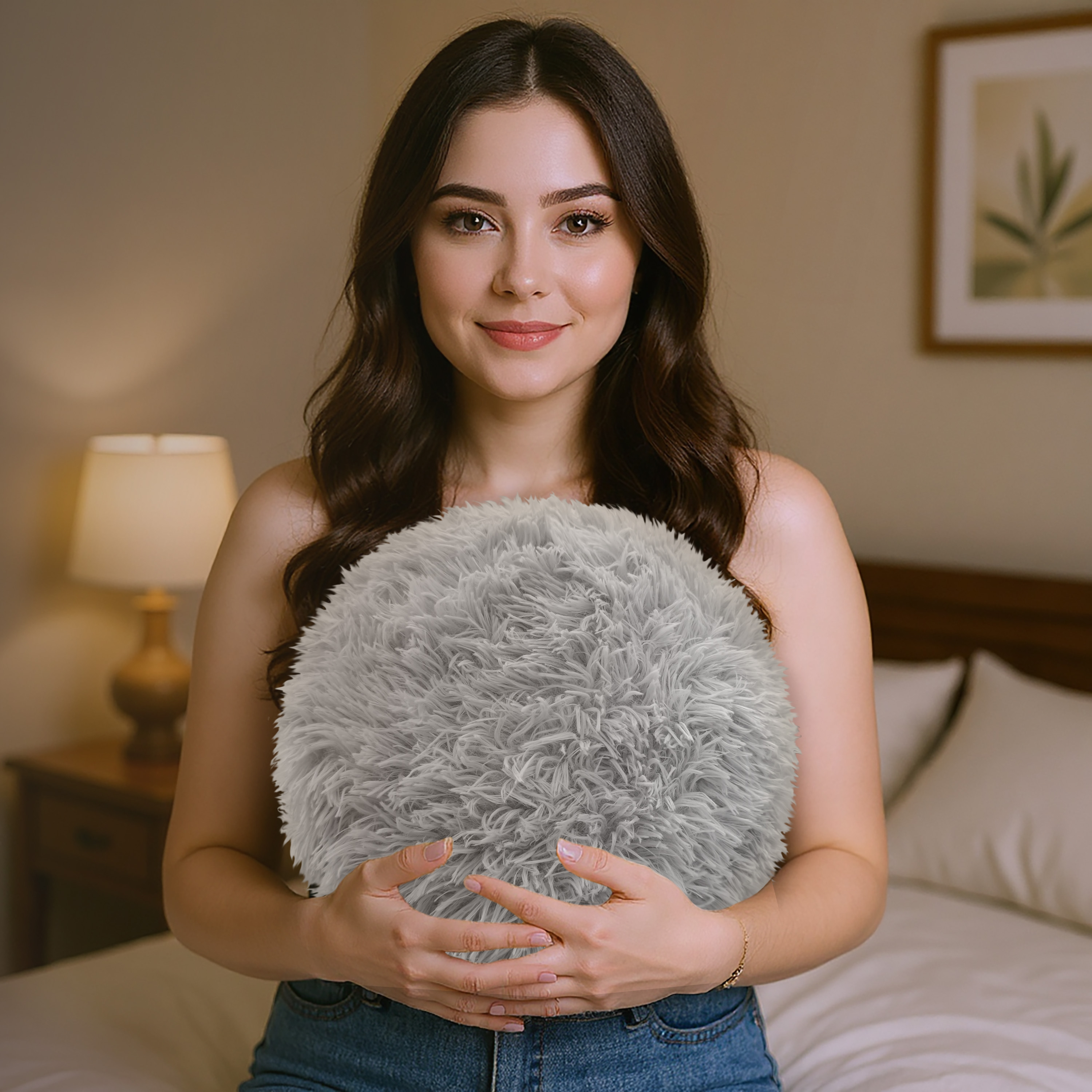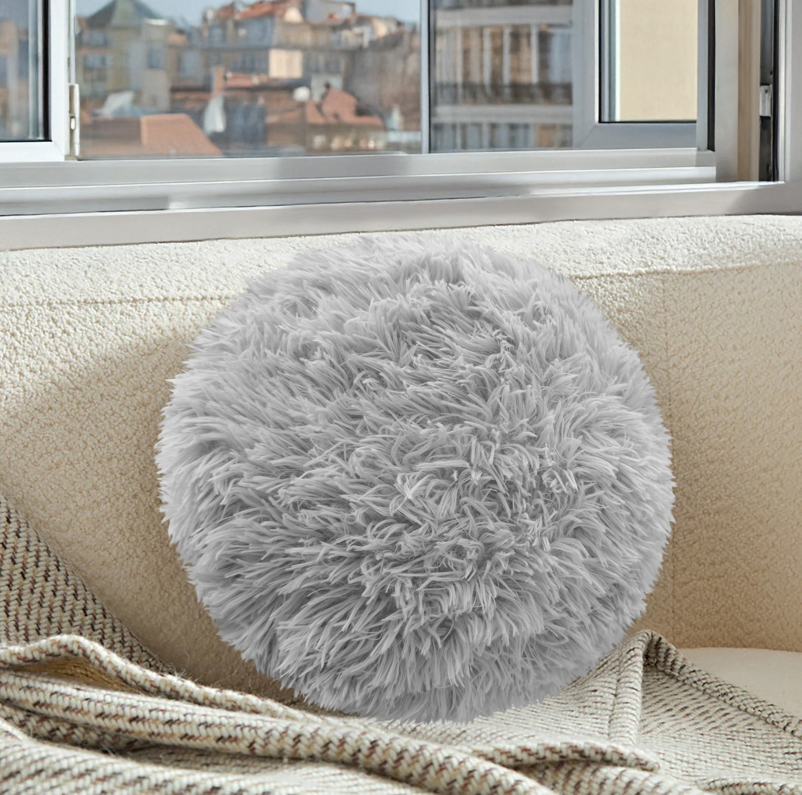 Stylowa, miękka i niesamowicie przytulna – okrągła poduszka Fluffy w odcieniu eleganckiej szarości to idealny dodatek do każdego wnętrza, w którym liczy się komfort i dobry gust.