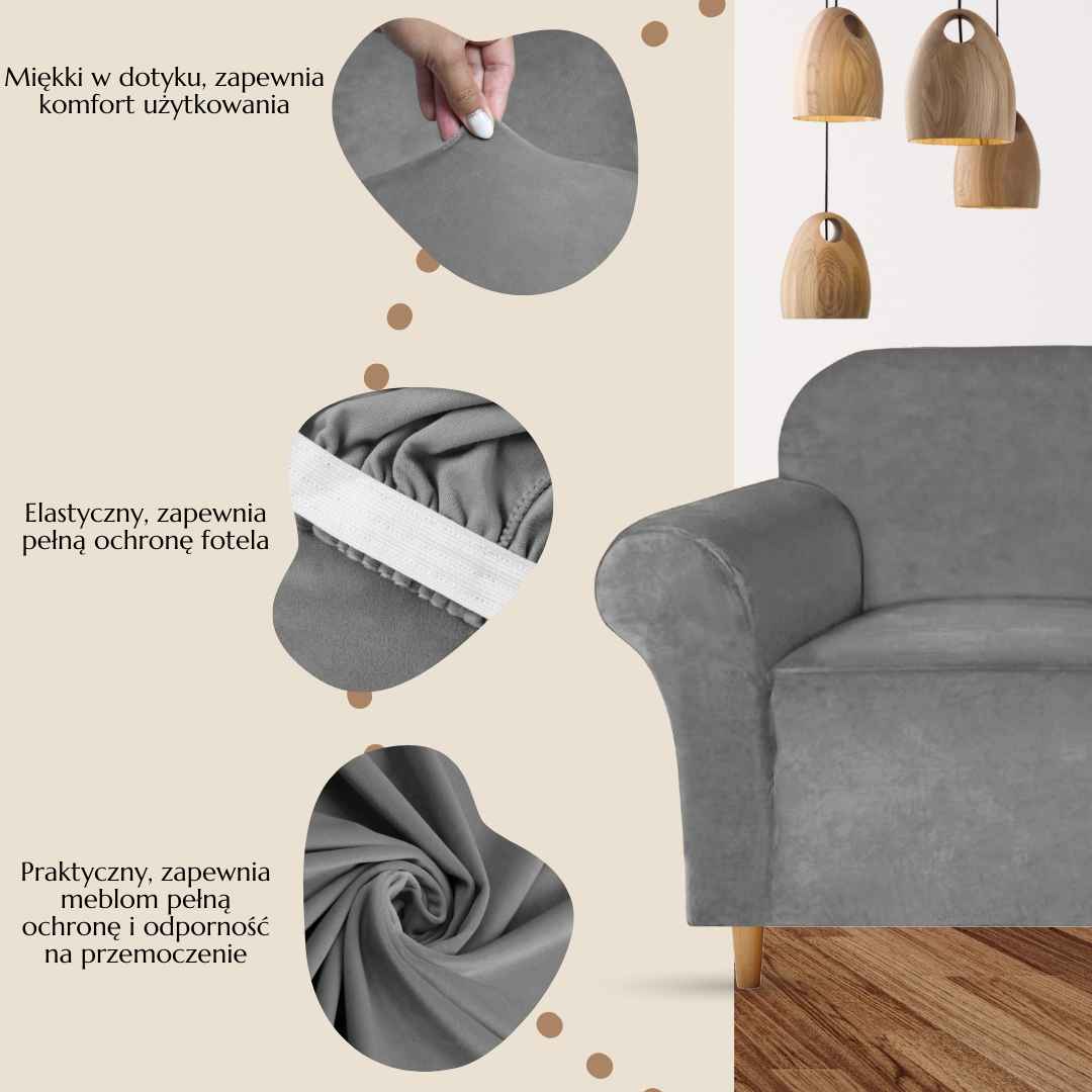 Najważniejszą cechą tego pokrowca jest jego wysokiej jakości velvet, który jest jednym z najbardziej miękkich i przyjemnych w dotyku materiałów. Delikatność i miękkość velvetu sprawiają, że Twój fotel staje się bardziej przytulny.