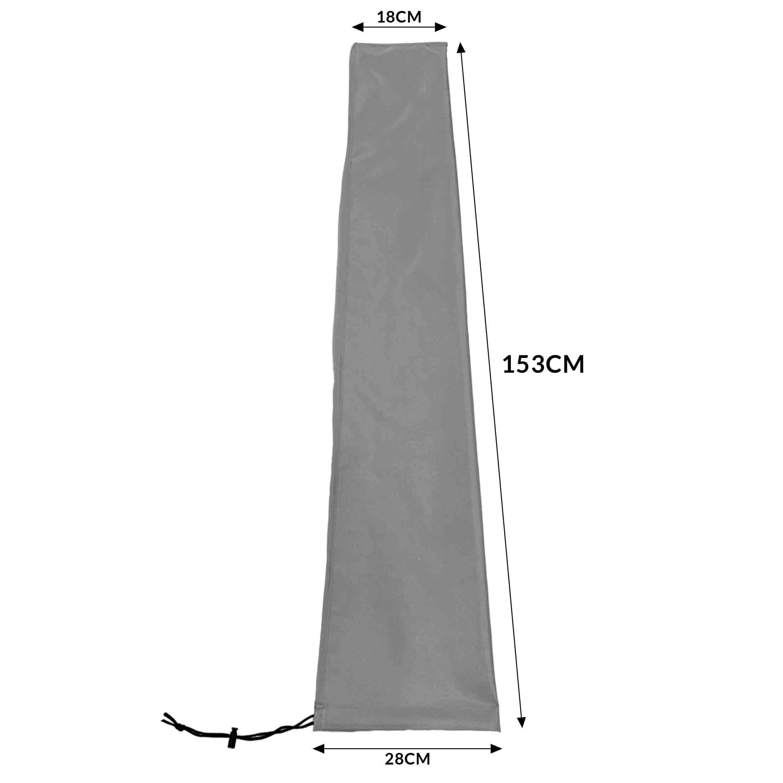 - Wymiary: Pokrowiec ma wysokość 153 cm oraz szerokość zwężaną ku górze, co sprawia, że pasuje do większości standardowych parasoli