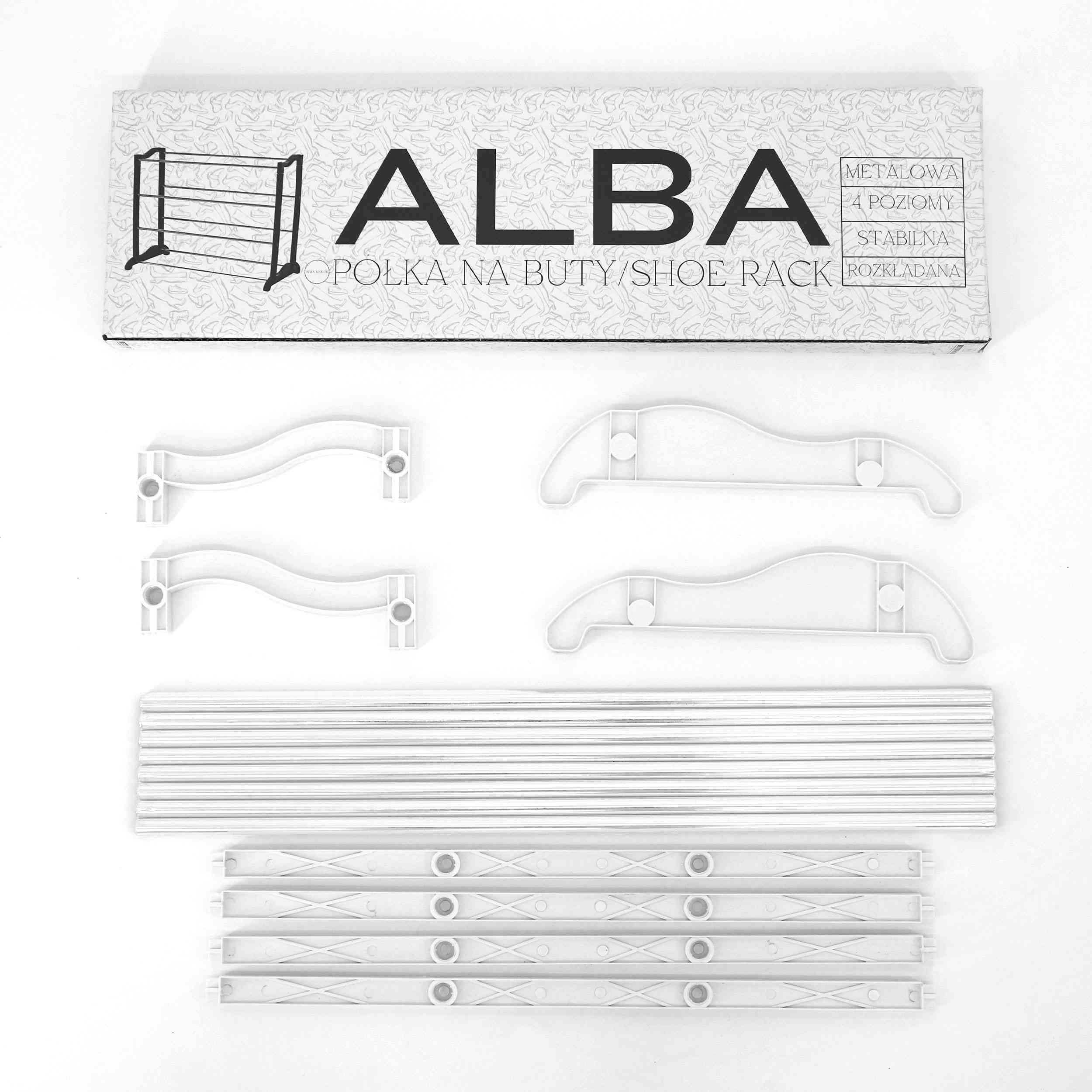 Wprowadź porządek do swojego przedpokoju lub sypialni dzięki naszej eleganckiej i funkcjonalnej półce na buty ALBA XL. Przeznaczona do przechowywania obuwia, ta biała, czteropoziomowa półka o wymiarach 90 cm długości, 16 cm szerokości i 50 cm wysokości, to idealne rozwiązanie do każdego wnętrza.