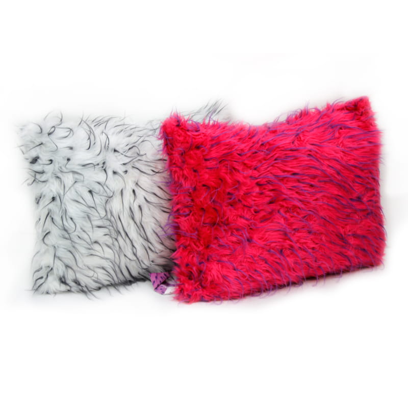 Poszewki wykonane są z wysokiej jakości futerka, które imituje jeżyki, ma jednokolorowy podszerstek oraz miękkie, futrzane pędzelki w kontrastowych kolorach. Zachwyca wyjątkową puszystością. Jej miękka struktura przypomina ulubione pluszowe zabawki, a „lejące” włosie sprawia, że jest nie tylko piękna, ale i niezwykle komfortowa.