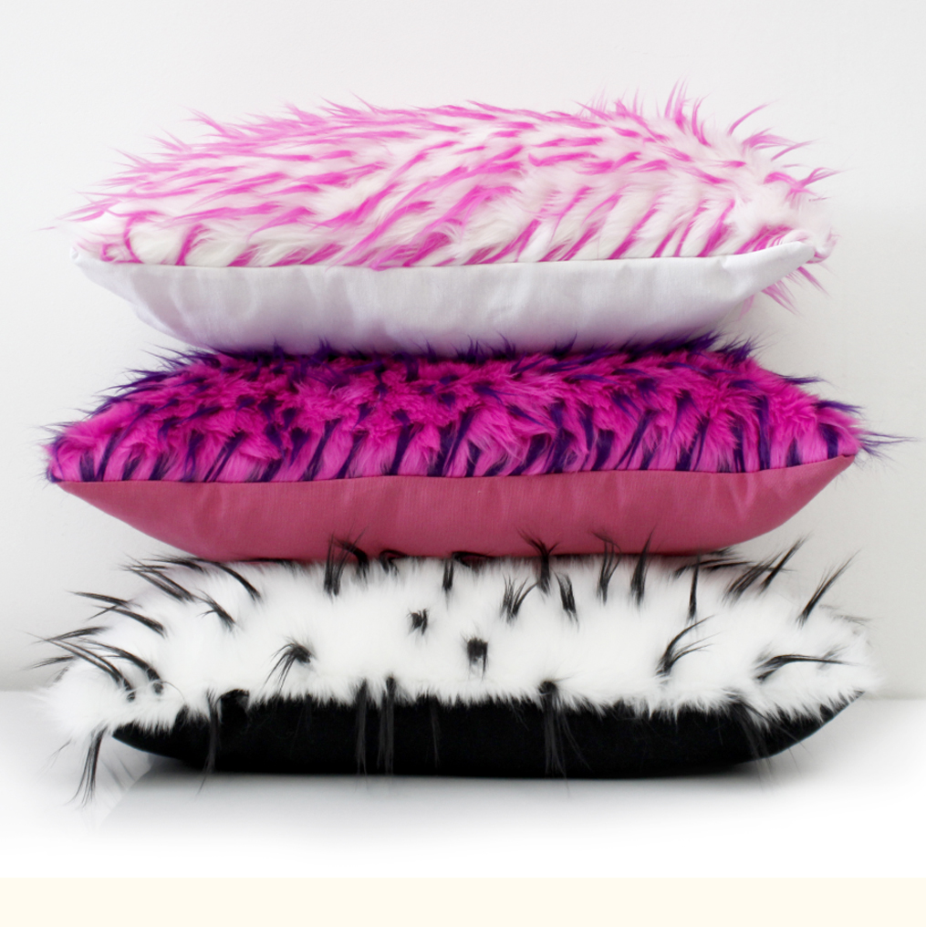 Poszewki wykonane są z wysokiej jakości futerka, które imituje jeżyki, ma jednokolorowy podszerstek oraz miękkie, futrzane pędzelki w kontrastowych kolorach. Zachwyca wyjątkową puszystością. Jej miękka struktura przypomina ulubione pluszowe zabawki, a „lejące” włosie sprawia, że jest nie tylko piękna, ale i niezwykle komfortowa.