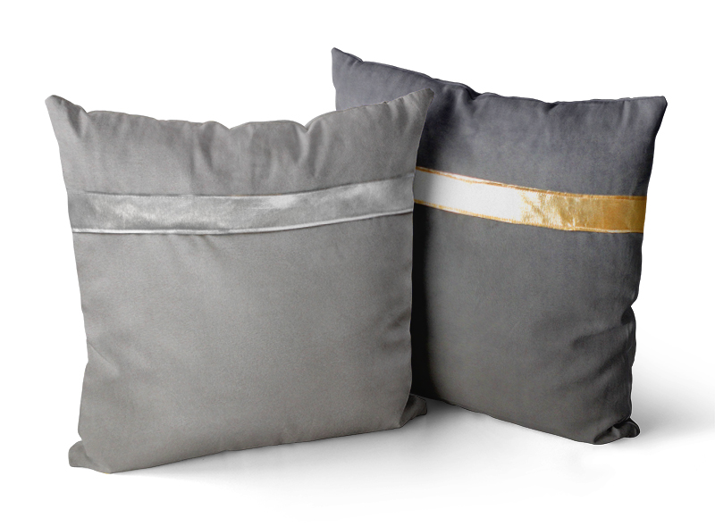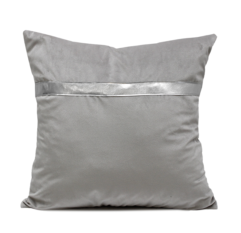 Produkt charakteryzuje srebrny element dekoracyjny, wykonany z PU leather, tj. eko skóry w odcieniach srebra, które w połączeniu z aksamitną szarością tworzy wysoko designerski produkt.
