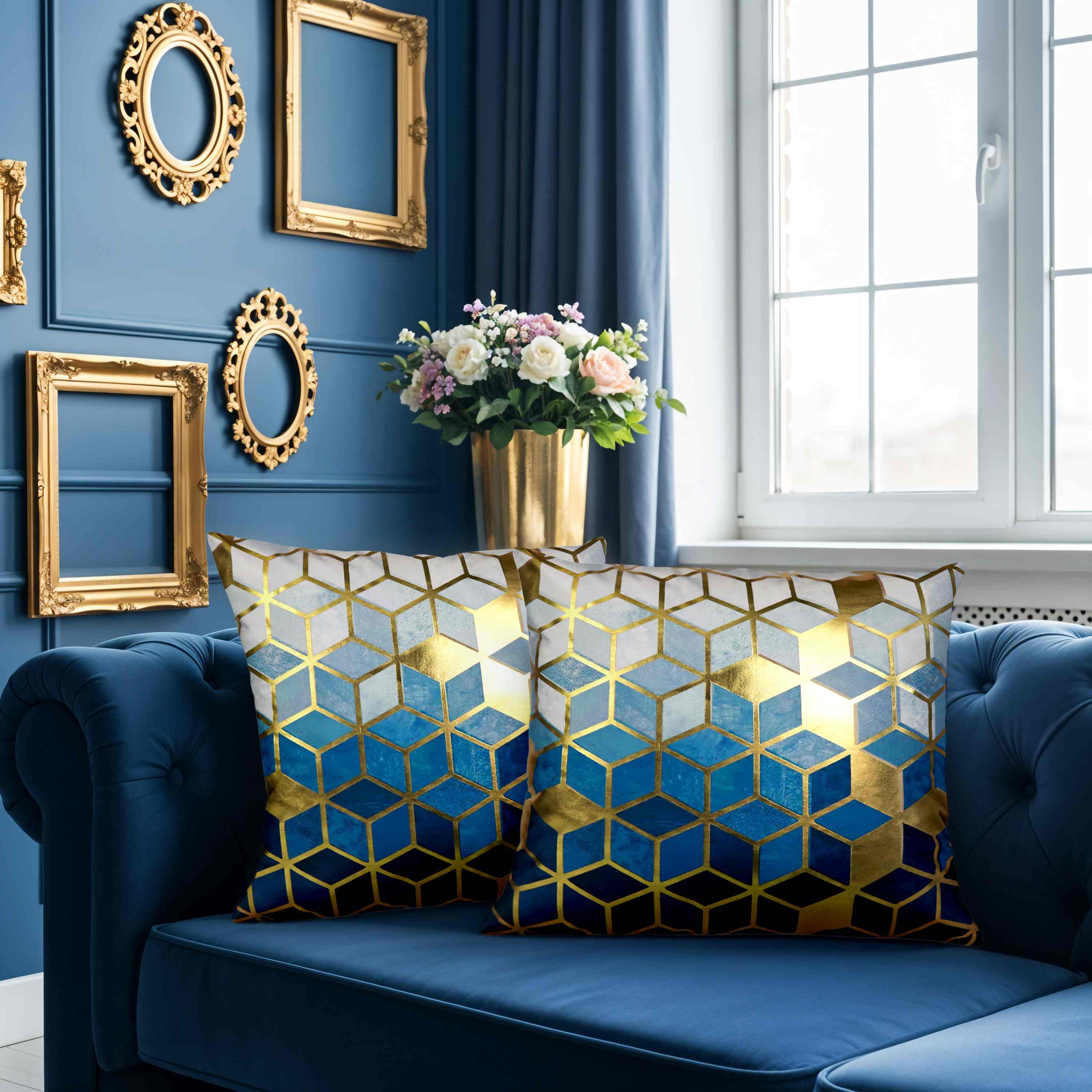 Poszewka KALA Velvet GEO 40x40 cm NIEBIESKI