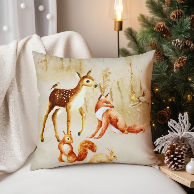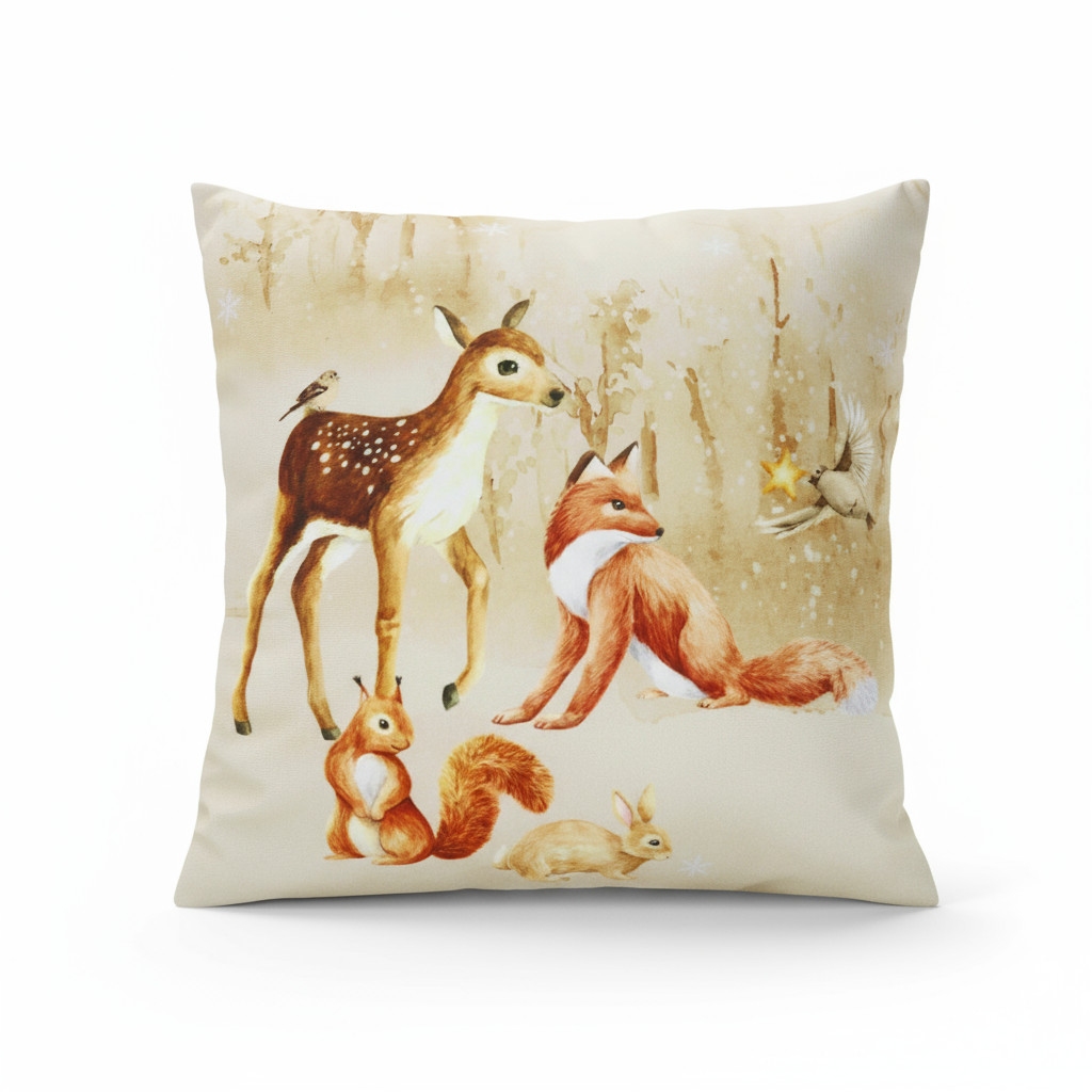 POSZEWKA ŚWIĄTECZNA ZIMOWY LAS 40x40 cm • Beżowa z Leśnymi Zwierzętami | Domarex