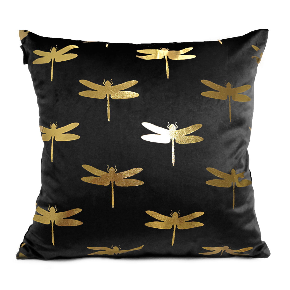 Poszewka Velvet GOLDEN DRAGONFLIES Black