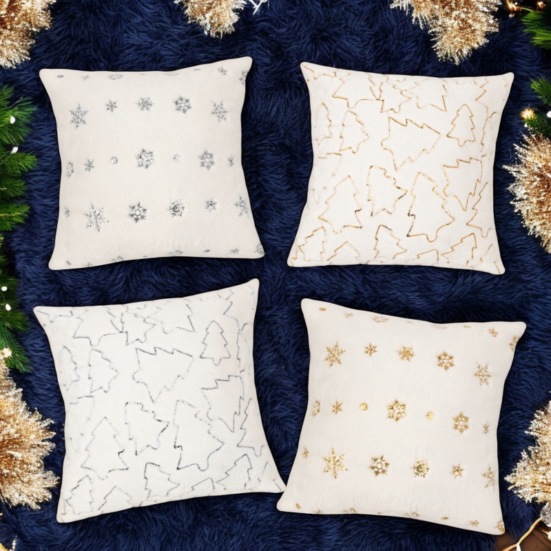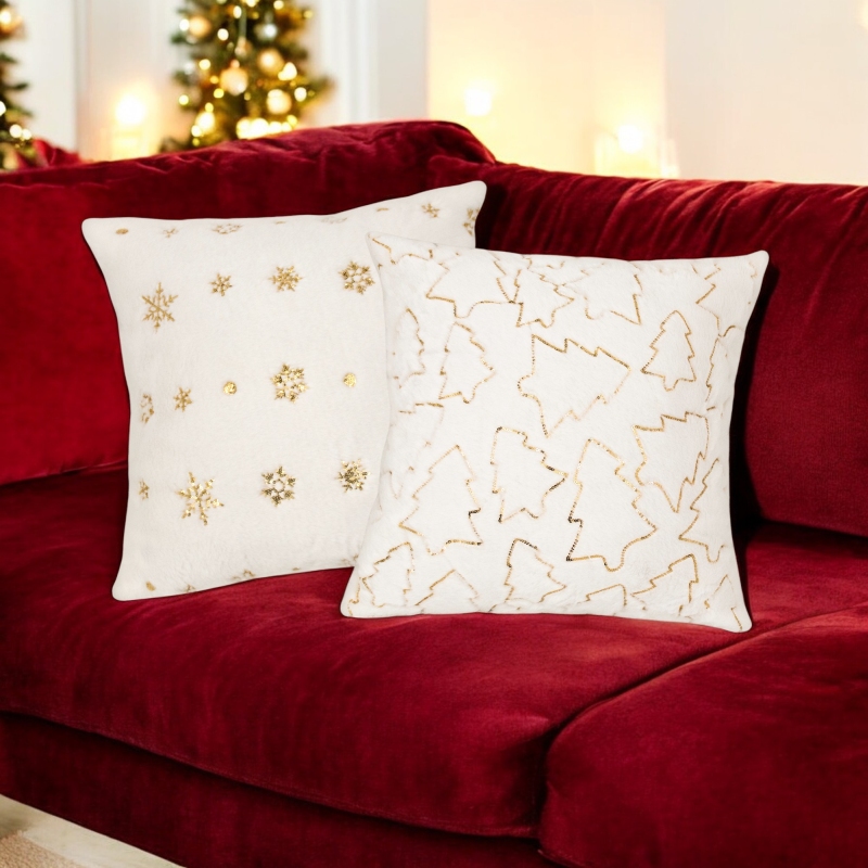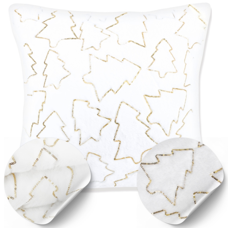 Poszewka eko Futro Sparkle Choinki Złote 45x45 cm