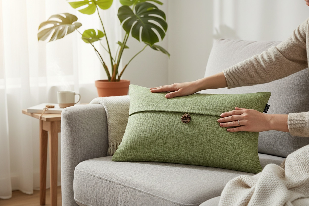 Poszewka z guzikiem VINTAGE HERMES 30X50 Zielony