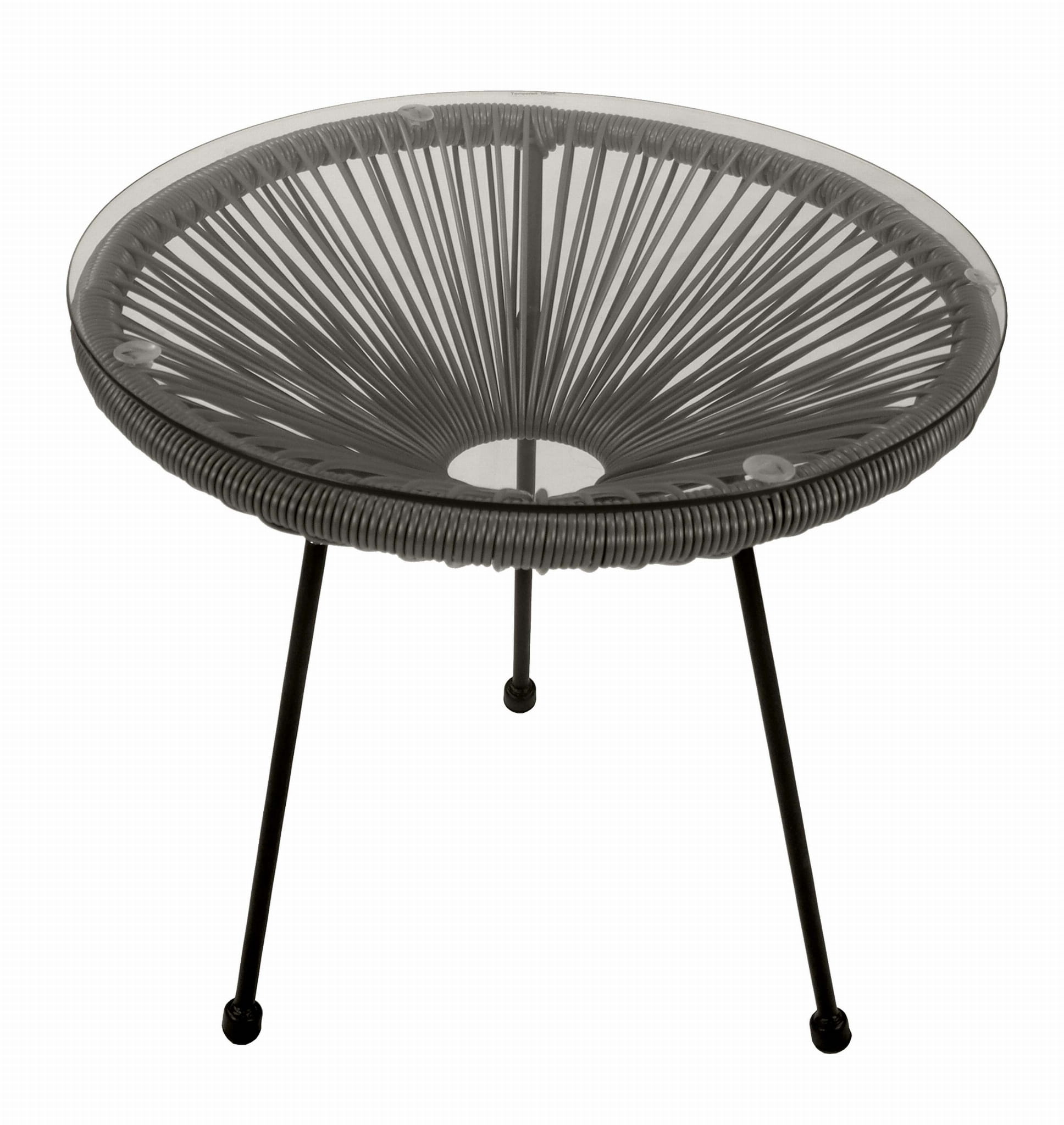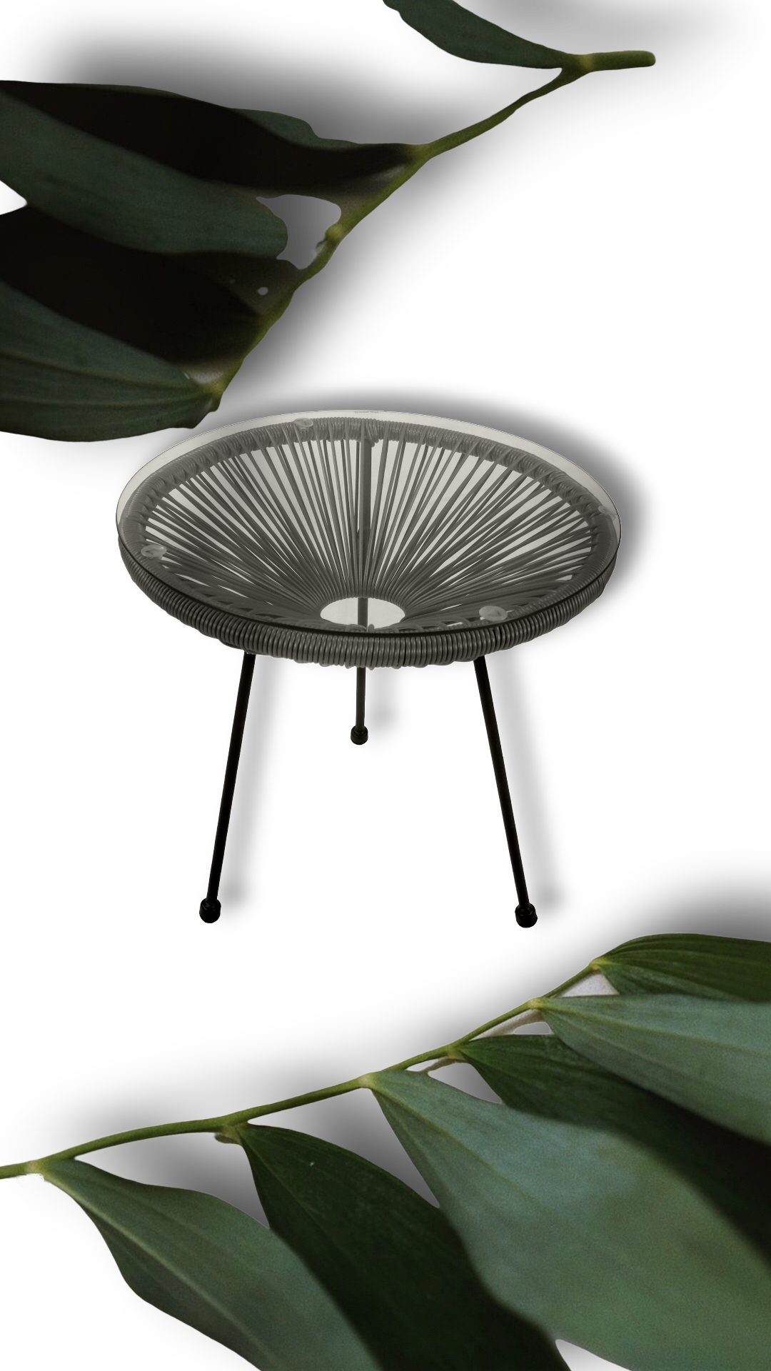 Stolik został wykonany z syntetycznych rattanowych żyłek, które nie tylko zapewniają komfort użytkowania ale również świetnie prezentują się na tle ogrodu i nowoczesnym wyglądem ozdobią każdą przestrzeń. Całość wieńczy elegancji szklany blat. Atutem stolika jest również sposób pielęgnacji. Wystarczy przetrzeć wilgotną ściereczką.