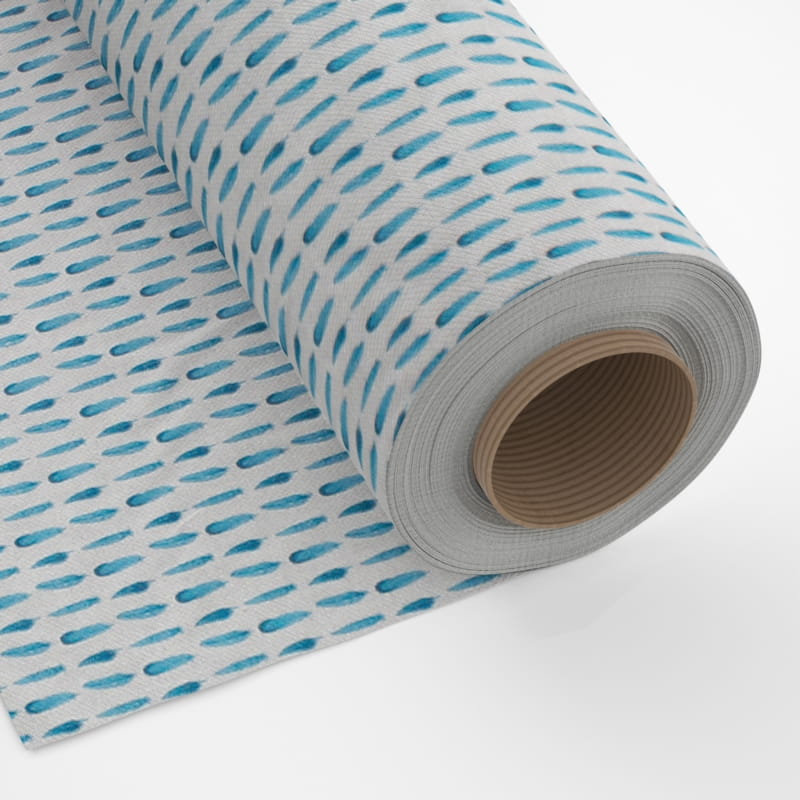 Mini Pióra w kolorze niebieskim. Ta wyjątkowa tkanina o szerokości 280 cm łączy