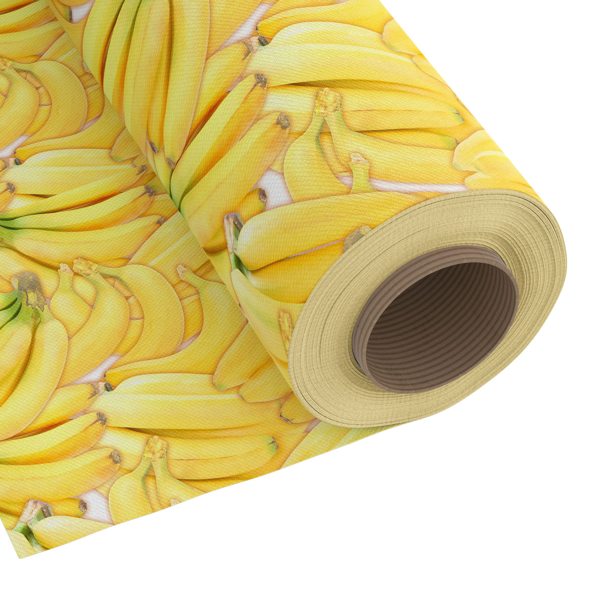 Tkanina wyprodukowana w najnowszej technologi DIGITAL. Wzór przedstawia bardzo realistyczne wizualnie kiście bananów w intensywnym, żółtym kolorze.