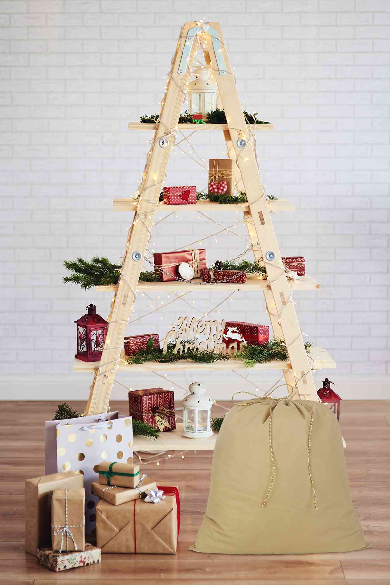 Worek na prezenty świateczny 47x50 cm L Beż