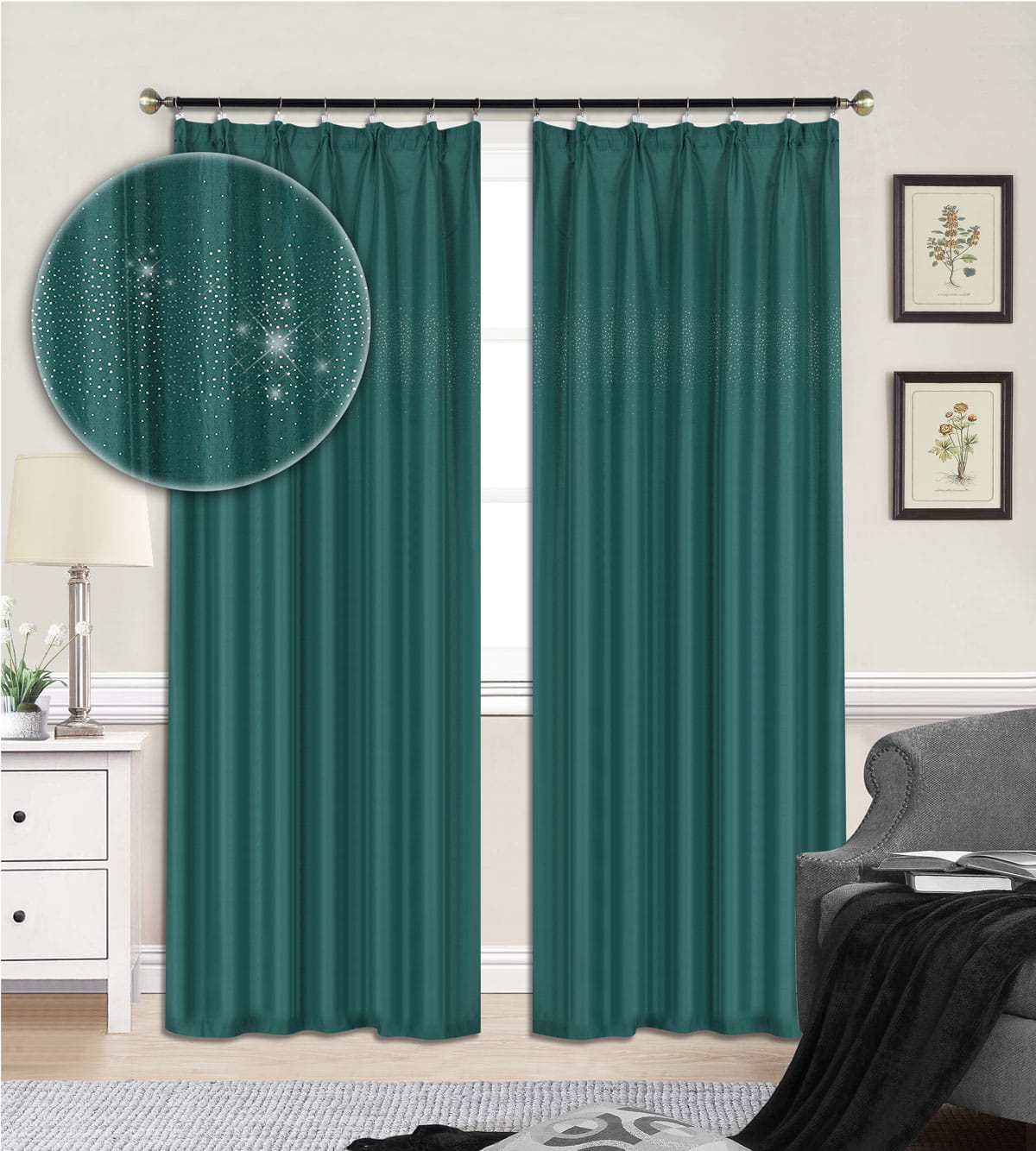 Zasłona DIAMONDS Cyrkonie 145x250 na taśmie ZIELEŃ