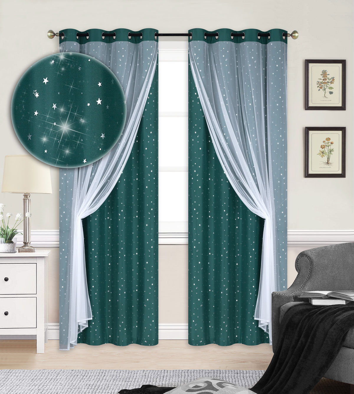 Romantycznego wyglądu dodaje nadruk w postaci maleńkich gwiazdek. Dzięki odpowiednio dobranym kolorystycznie dodatkom w prosty sposób można zmienić charakter swojego pokoju, dodadzą elegancji i niebanalnego wyglądu w każdym pomieszczeniu. Przepięknie wyglądają w salonie, kuchni, pokoju dziennym a także w pokoju dziecka.