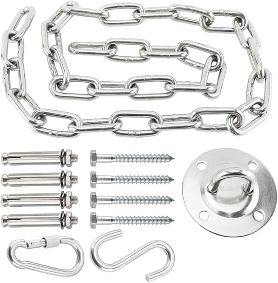 - Solidność i wytrzymałość: Solidne elementy montażowe, takie jak karabińczyki, wkręty, kotwy rozprężne, mocny łańcuch i stalowy uchwyt, zapewniają niezawodność i bezpieczeństwo podczas użytkowania.