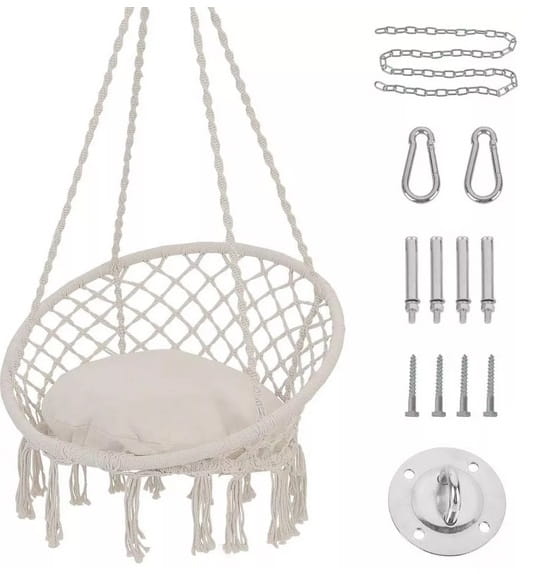- 2 karabińczyki: Łatwe i szybkie przyłączenie huśtawki do uchwytu sufitowego.