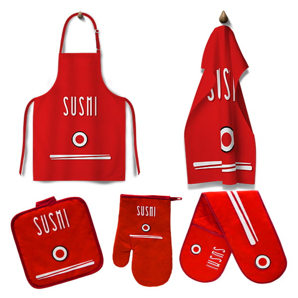 Rękawica kuchenna + podkładka + ręcznik + podwójna rękawica + fartuch