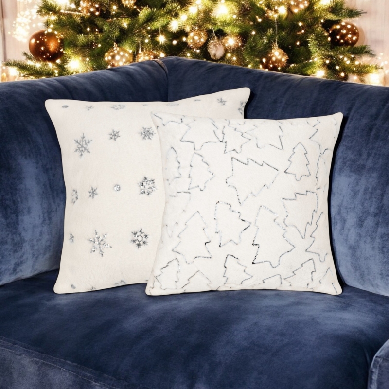 - Koordynujące wzory: Obie poszewki doskonale współgrają ze sobą, tworząc harmonijną całość, która będzie pasować do eleganckich wnętrz, nadając im niepowtarzalnego, świątecznego lub zimowego charakteru.