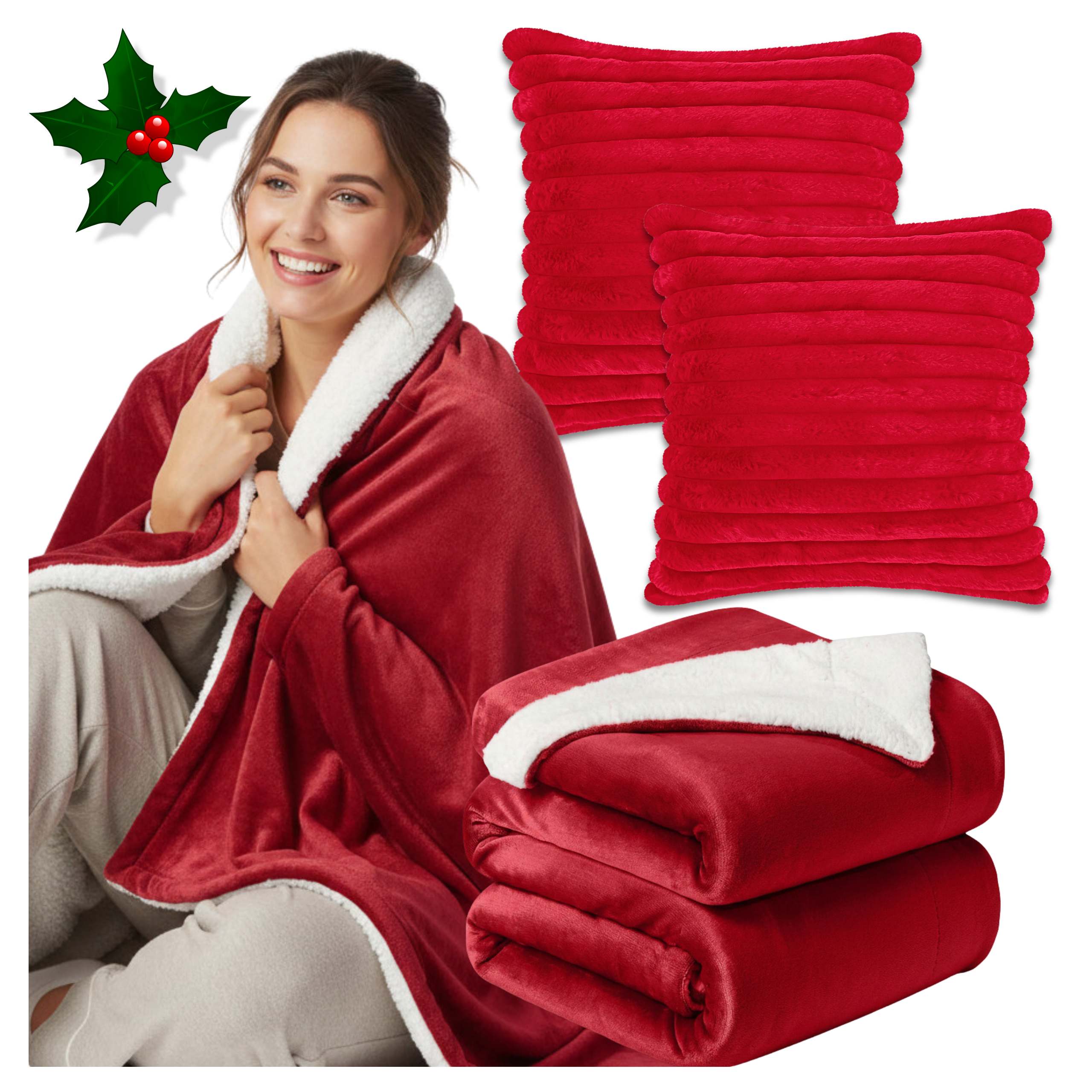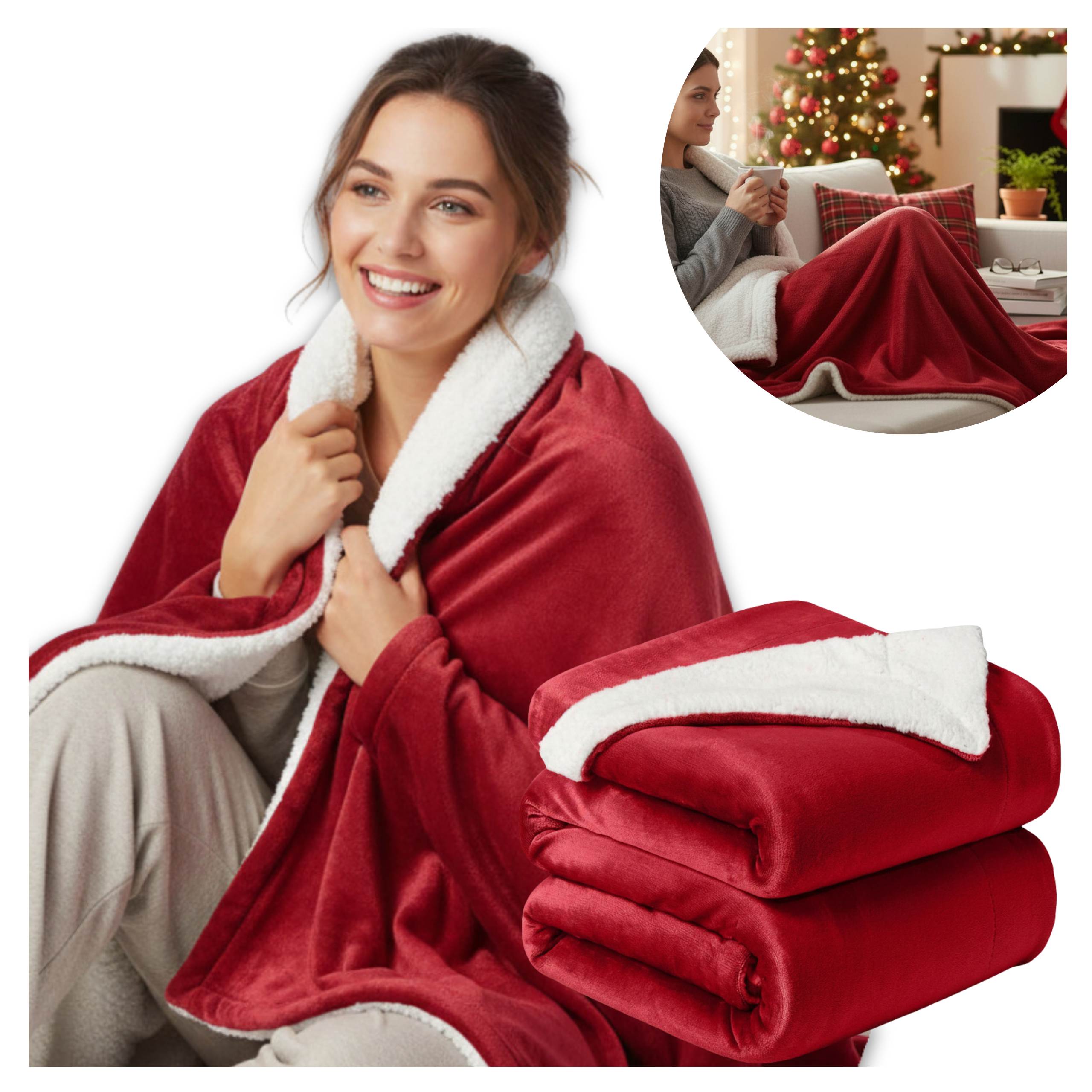 Zestaw Winter Comfort – Koc Marlborough Sherpa 150x200 cm + 2 Poszewki Comfort Faux Fur 45x45 cm (Czerwony)