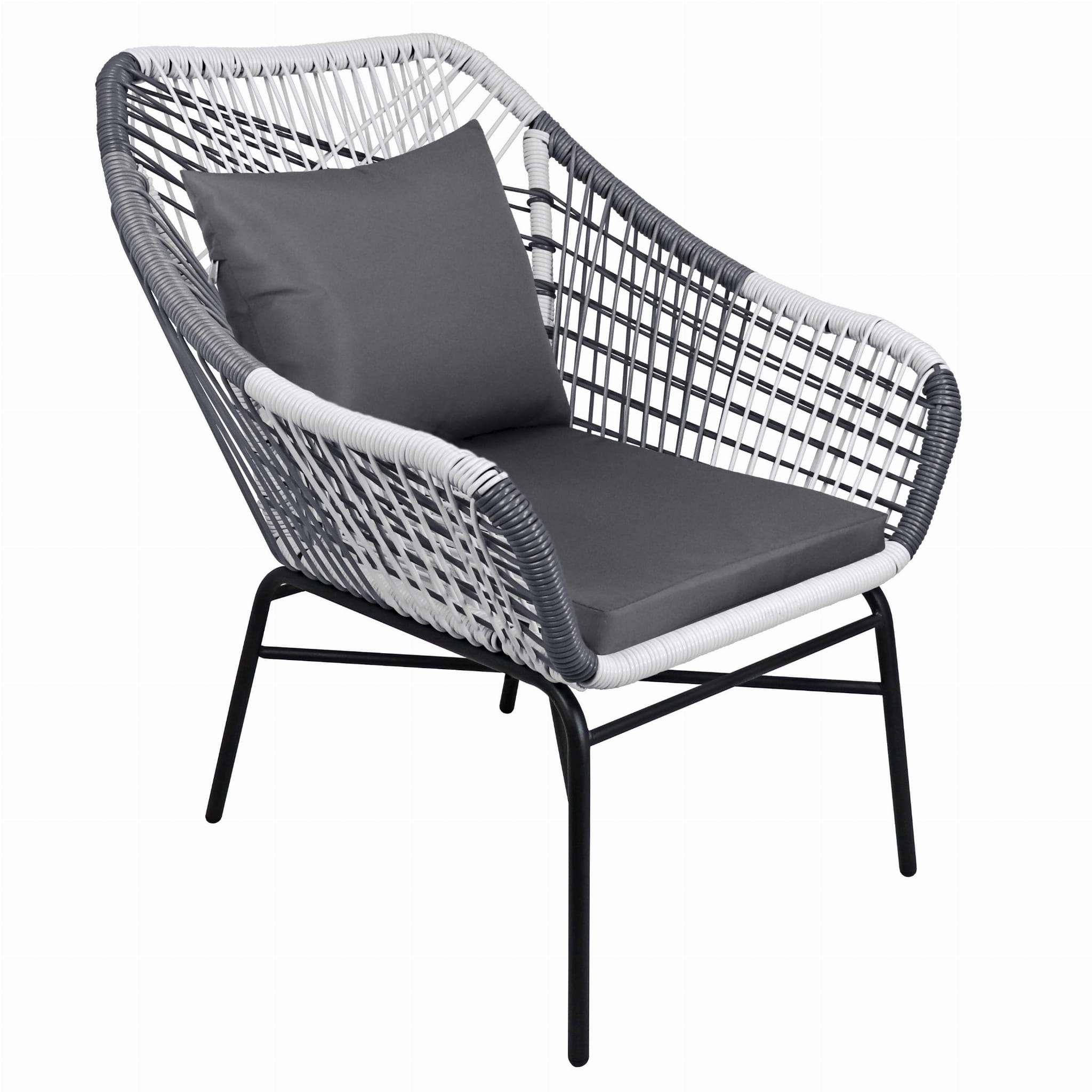 Konstrukcja foteli została wykonana z ocynkowanej stali oraz wysokiej jakości technorattanu PE, który jest odporny na promienie UV, wilgoć oraz zmienne warunki atmosferyczne. Dzięki temu meble zachowują swój elegancki wygląd przez długi czas.