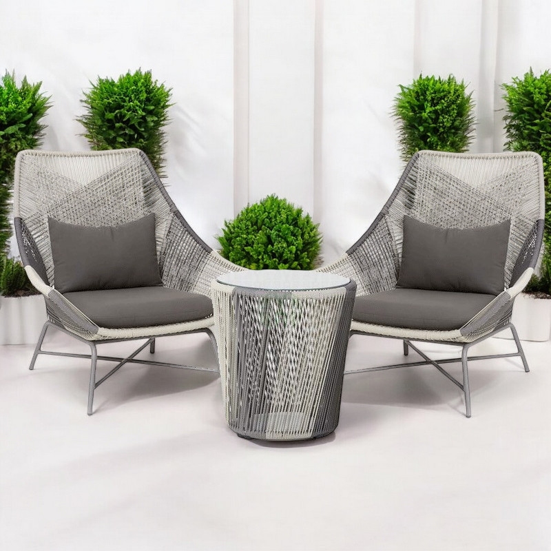 Ergonomiczny kształt foteli oraz miękkie poduszki sprawiają, że zestaw zapewnia wyjątkowy komfort wypoczynku. To idealne miejsce na poranną kawę, chwilę relaksu przy książce lub wieczorne spotkanie przy lampce wina.