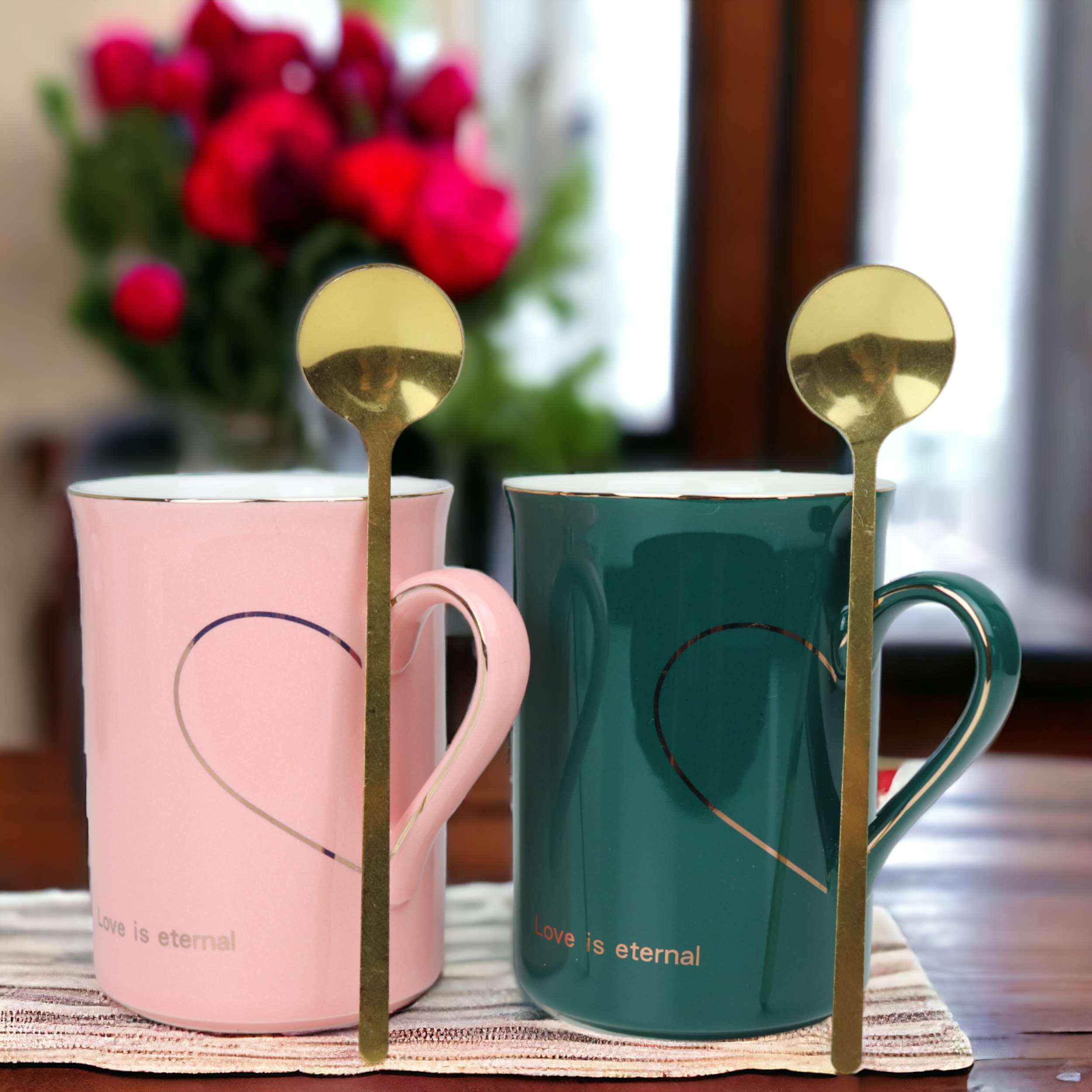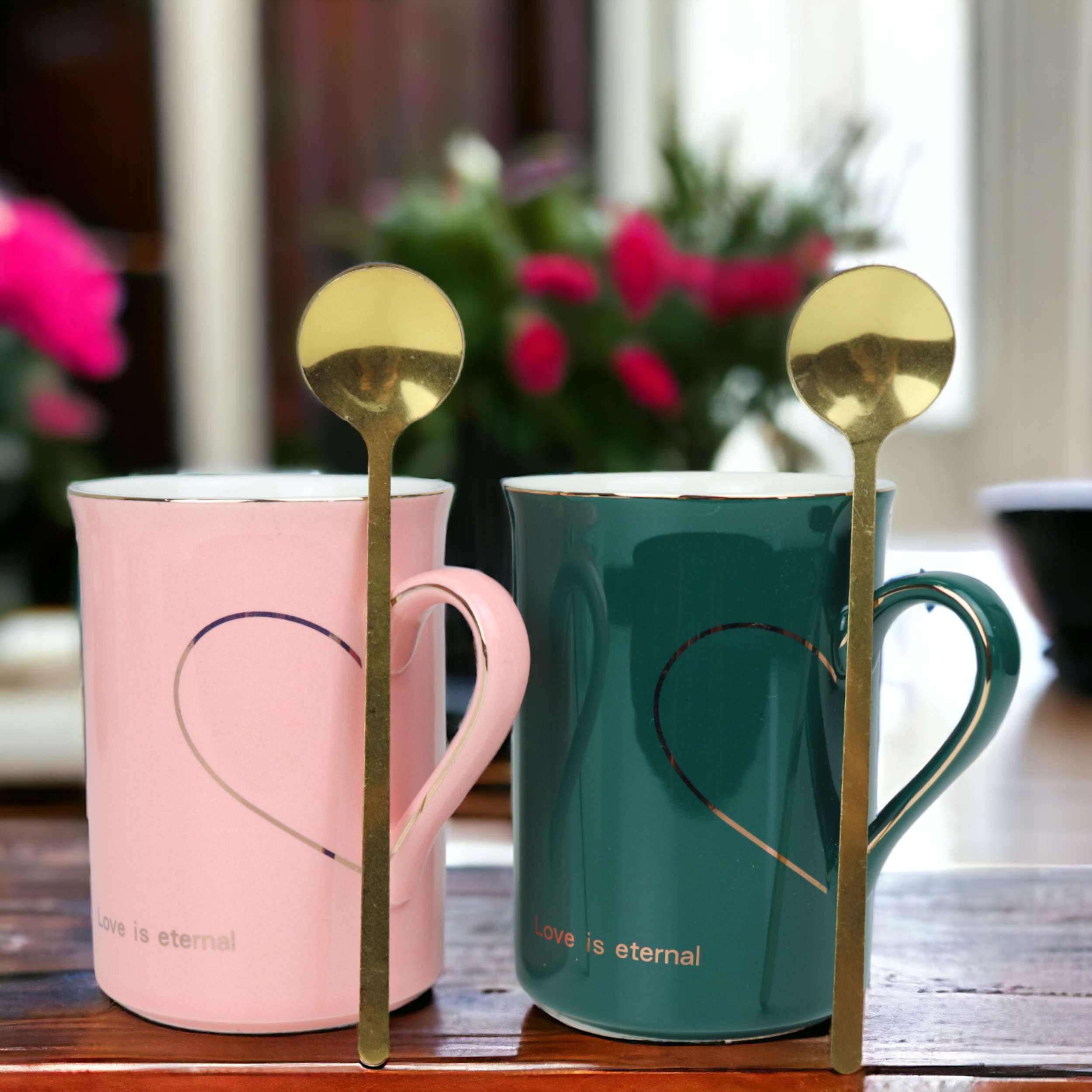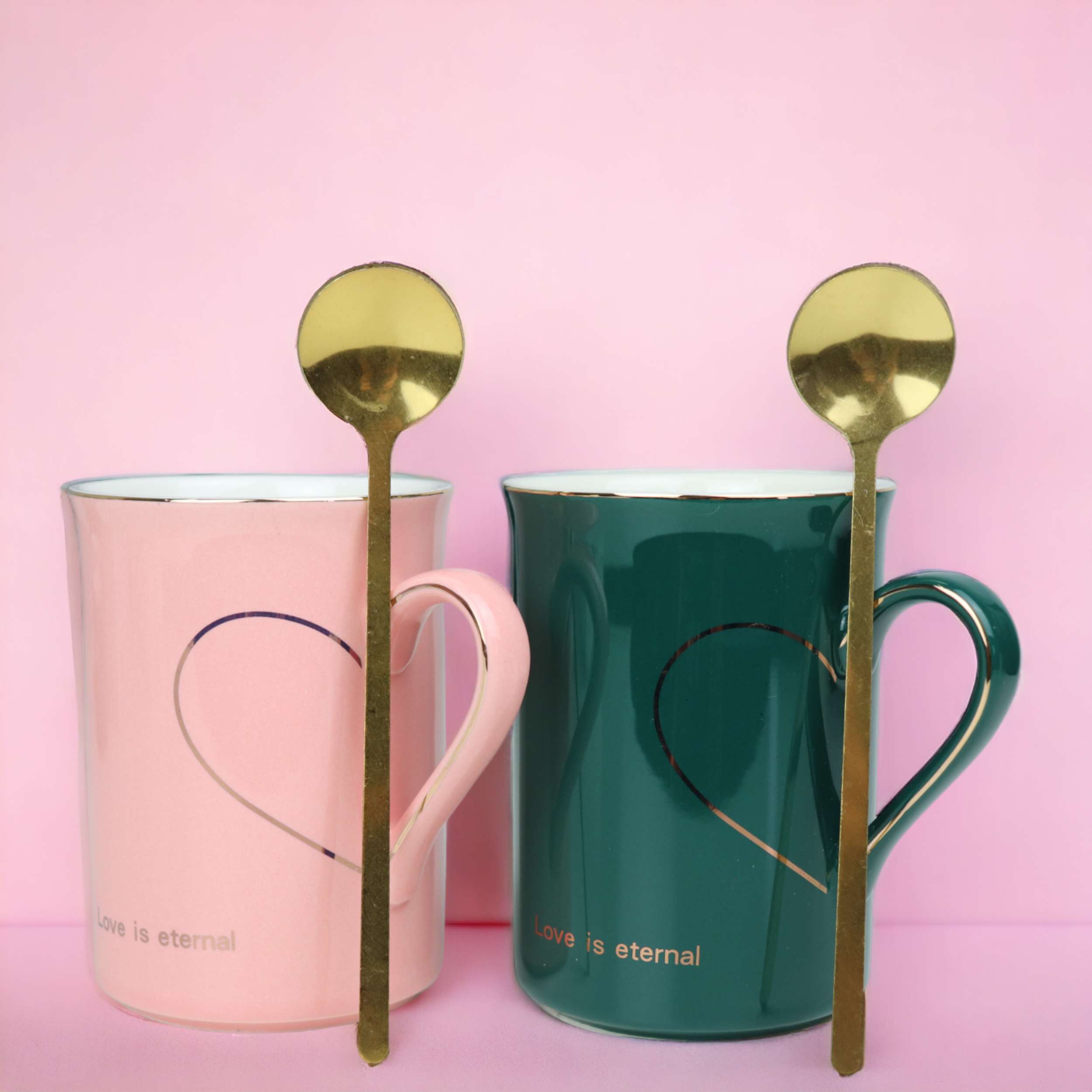 Zestaw Tazza 2x Kubek+ Łyżeczka Zielony Różowy